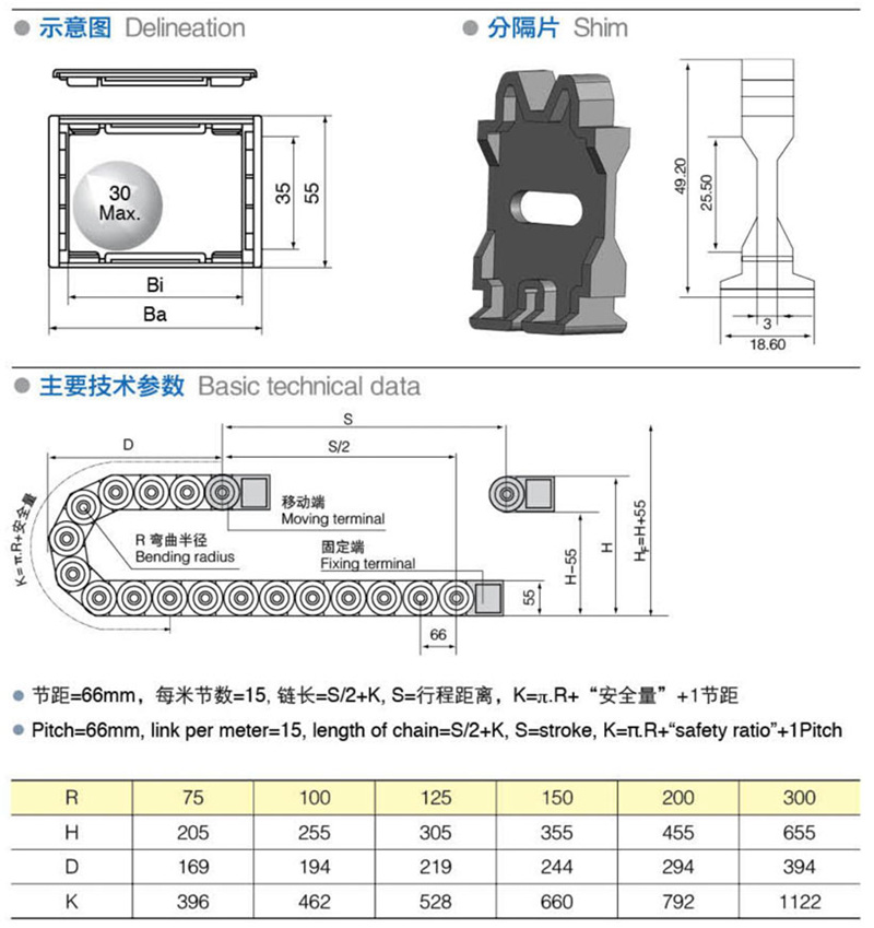 彎曲半徑: 55 75 100 125 150 200 300